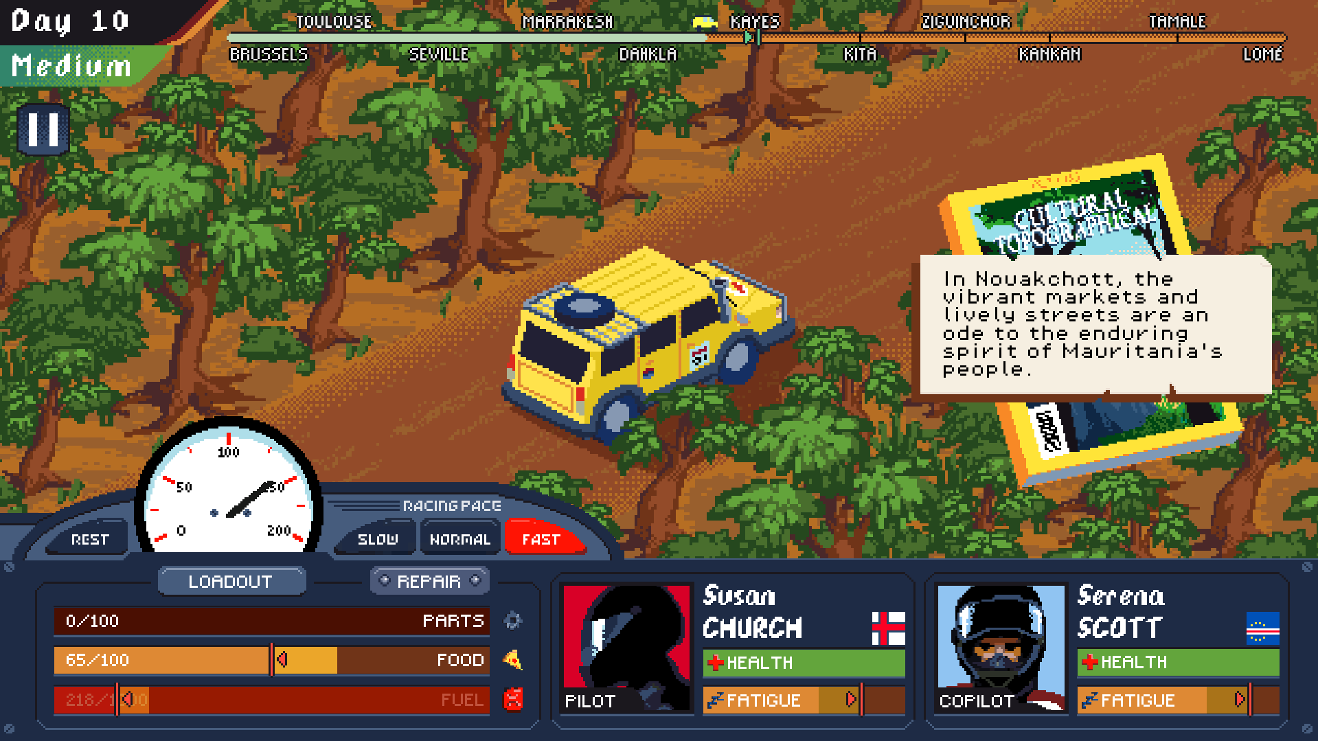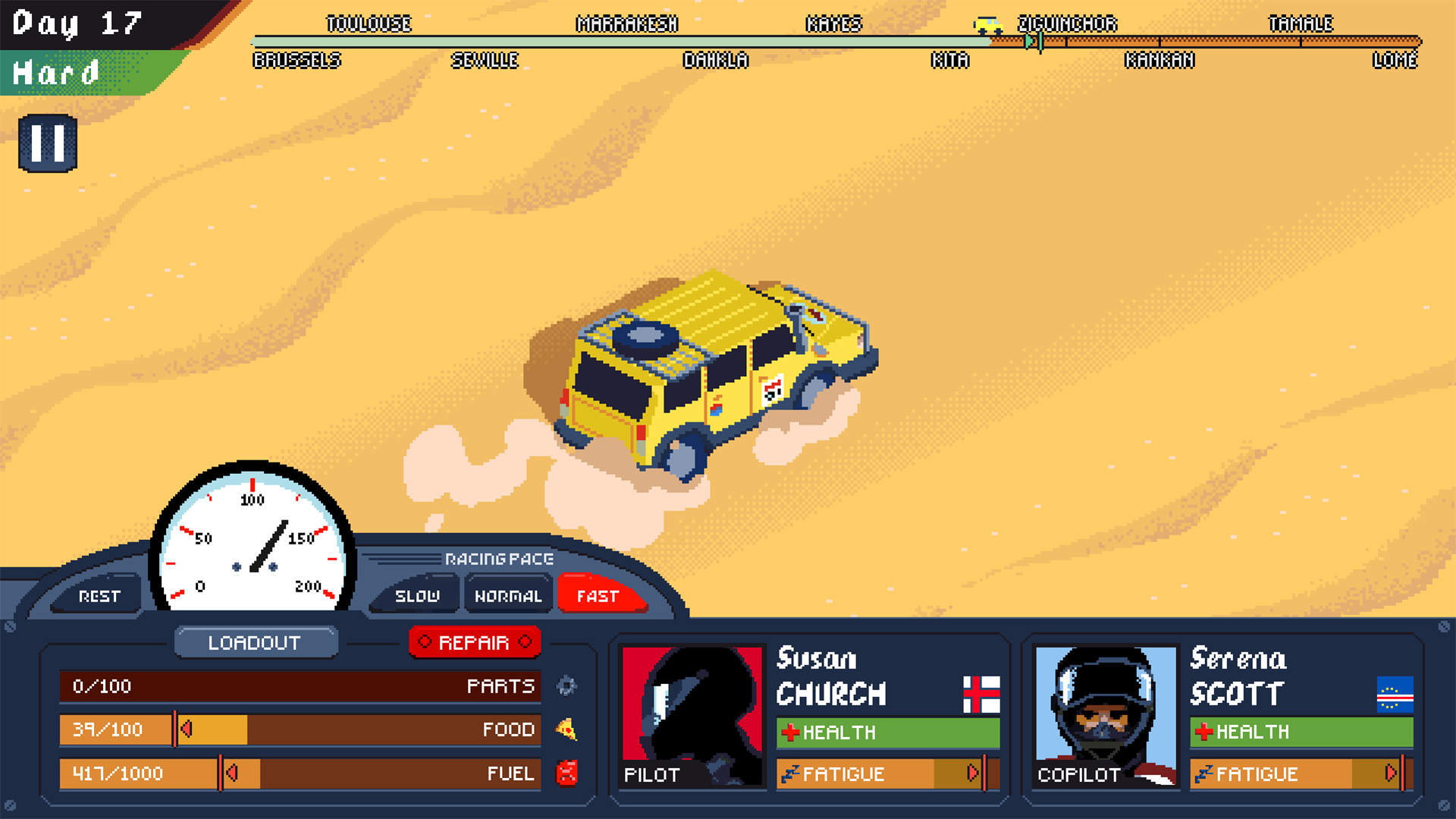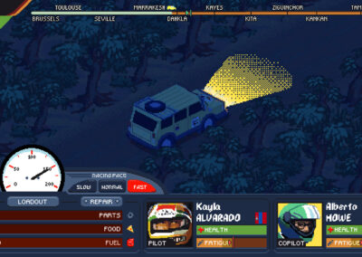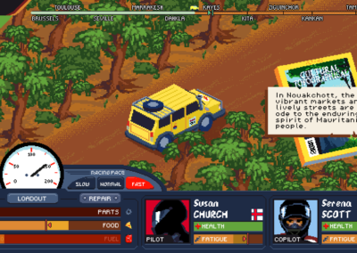 A single player adventures & resource management game. Embark on a thrilling rally adventure across Europe and Africa in Desert Race Adventures! Manage your team, vehicle, and resources strategically to navigate treacherous terrains and claim victory. Or, try, lose and try again…