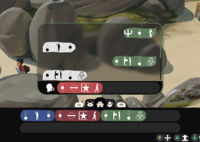 You can collect any phrase spoken by an islander and store it in your inventory. Some symbols you might understand. Others you will not. You can then speak back your collected phrases to other islanders. How they respond to you will teach you the meaning of the phrase you just repeated.